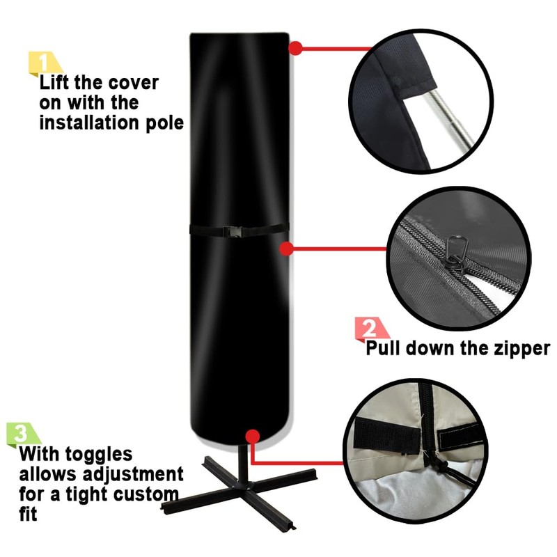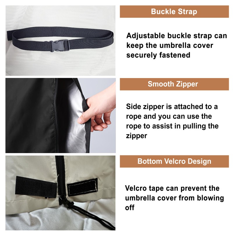 - User-Friendly - Each package includes a telescopic rod, which facilitates easy lifting and removal of the umbrella cover.The side zipper is attached to a rope, allowing you to effortlessly pull the zipper with the assistance of the rope.