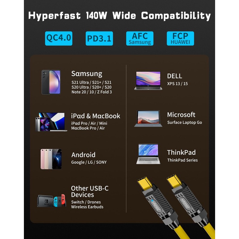 - 【Short USB-C Cable】The 7.8 inch USB C to USB C Cable has a built-in E-marker smart chip that safely delivers up to 140W (28V/5A) Power Deilvery fasting charging. Works with the USB Hub Multi-Port Adapter to support simultaneous input and output bidirectional charging of devices.