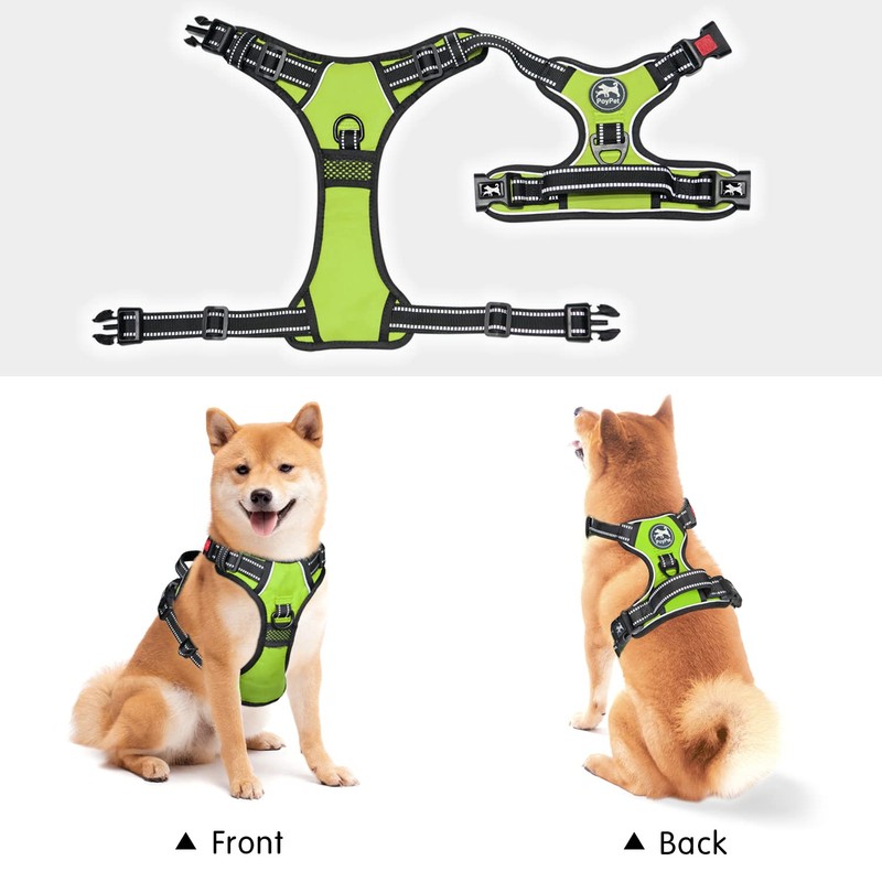 PoyPet No Pull Dog Harness, No Choke Front Clip Dog Reflective Harness, Adjustable Soft Padded Pet Vest with Easy Control Handle for Small to Large Dogs(Green,S)