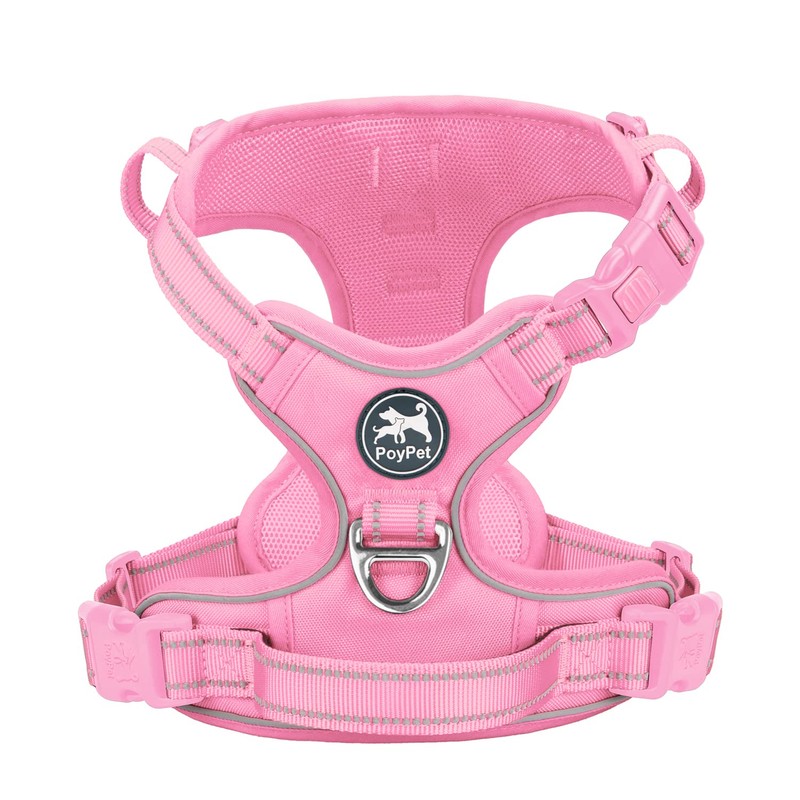 PoyPet No Pull Dog Harness, No Choke Reflective Dog Vest, Adjustable Pet Harnesses with Easy Control Padded Handle for Small Medium Large Dogs(Light Pink Matching Trim,XL)
