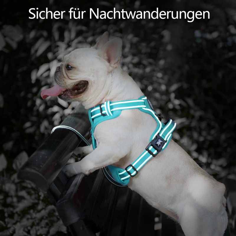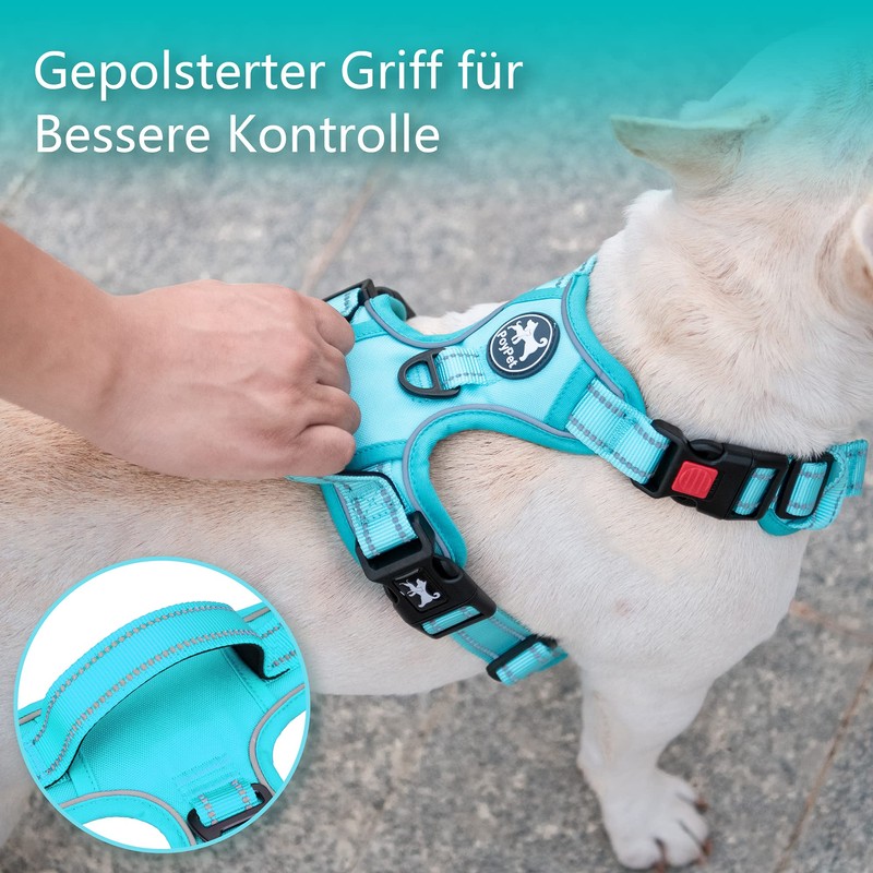 PoyPet No Pull Dog Harness, Reflective Dog Harness for Dogs without Choking, Soft Padded Pet Vest with Easy Control Handle (Mint Blue Matching Trim, S)