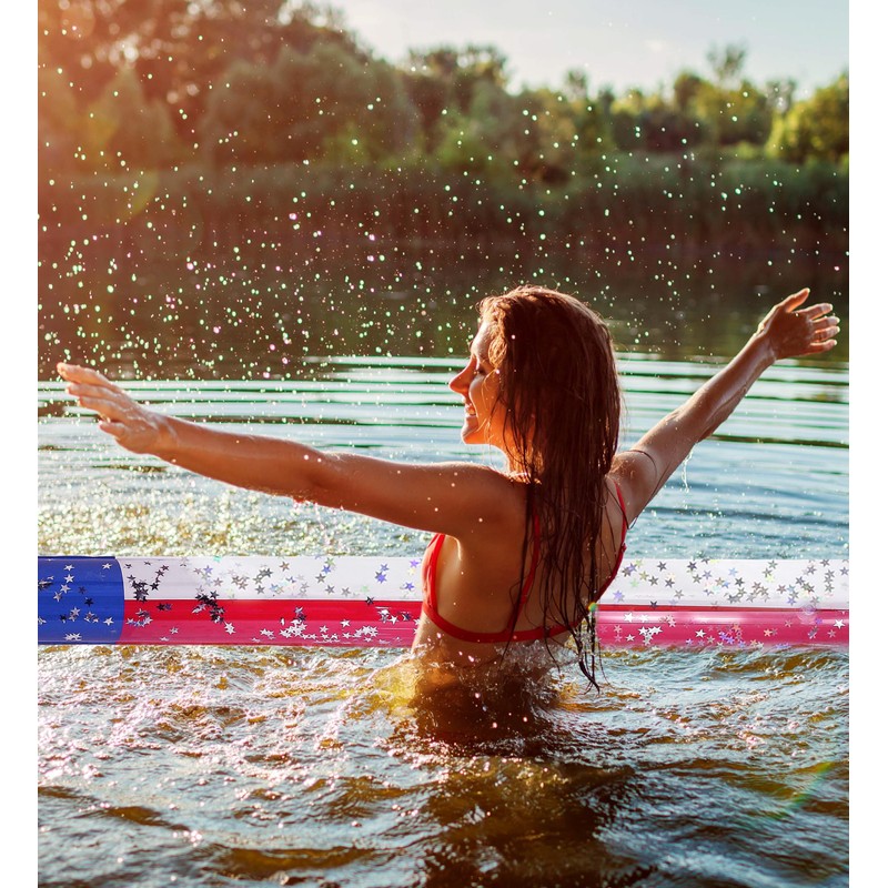 - Perfect for Adding a Festive, Patriotic Touch to Backyard BBQs, Pool Parties, and Beach Days - Whether you're planning a 4th of July bash or a Texas-themed celebration, these red, white, and blue pool noodles are great floating toys for both adults and kids ages 6 and up. The bright colors of these red white and blue pool noodles and sparkly confetti add flair to every swim and water activity.