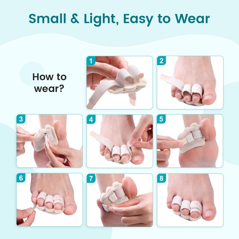 - 【Small and Light, Does Not Affect Daily Activities】: The splint is made of soft fabric, which is very breathable and durable. It is small and light, and there is no burden to wear it for a long time. It does not affect walking, standing or other daily activities, allowing you to enjoy the process of your toes gradually recovering to health without knowing it. In addition, it is easy to clean and can be used repeatedly.
