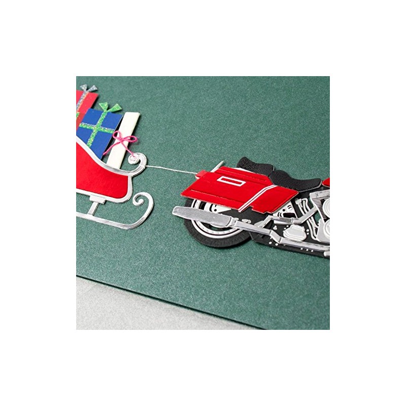 - Handmade with layered paper elements, this cool Christmas card features a motorcycle pulling a sleigh full of presents.