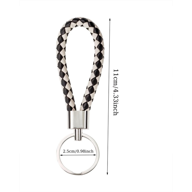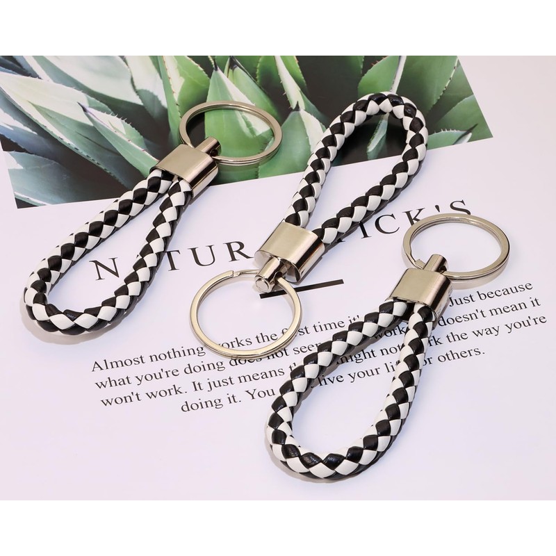 PPhtony Braided Leather Key Fob Car Keychain Ring Woven Strap Keychain Accessories for Men Women Birthday Christmas Gifts (3, Black & White)