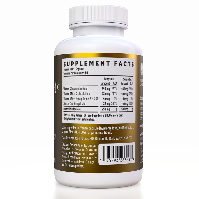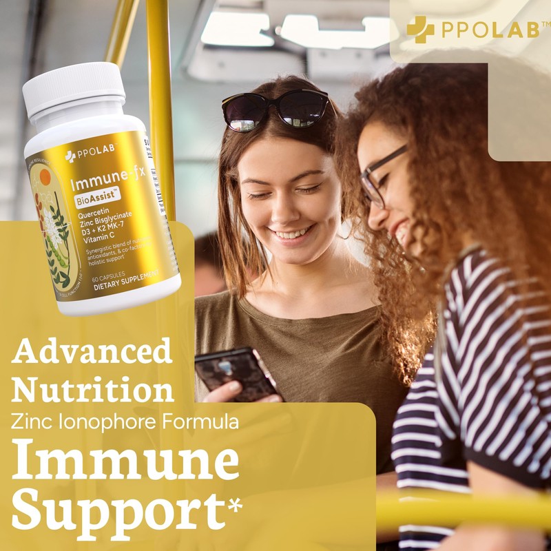 Immune-fx™ Advanced Chelated Zinc Ionophore Immune Support & Allergy Health Supplement, Quercetin 500mg, Antioxidant Vitamin C, D3, K2 MK7, Promotes DNA, Heart, Lung, Sinus Health, 60 Vegan Capsules