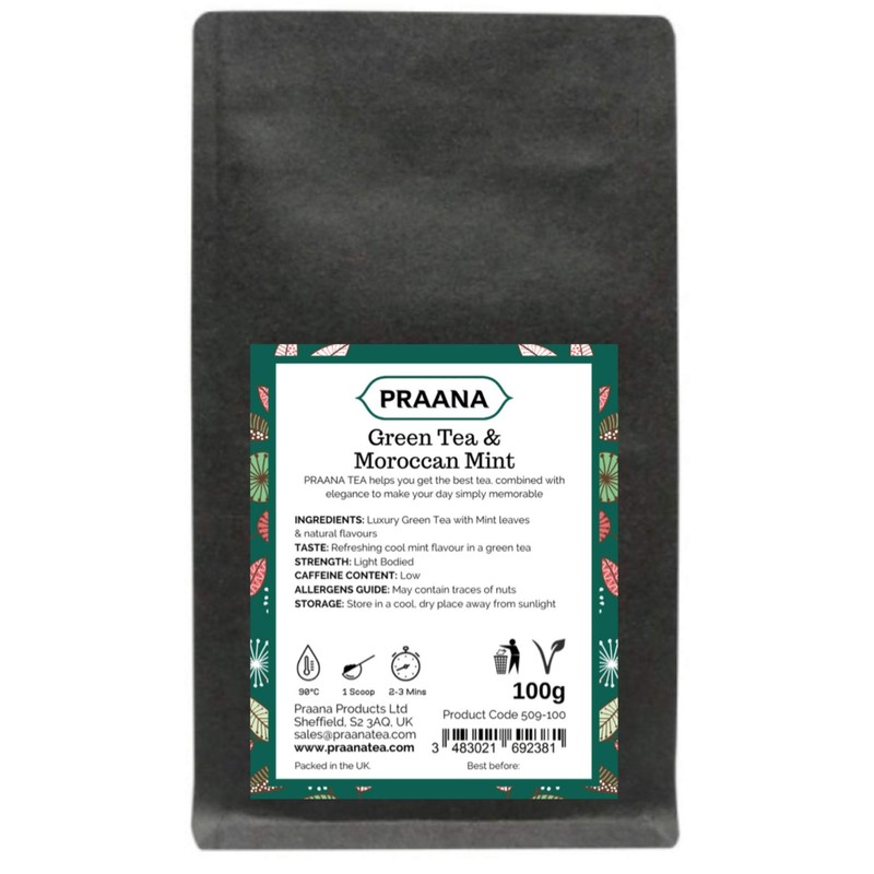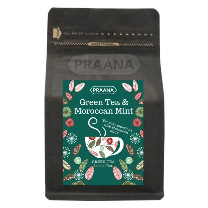 PRAANA TEA Green Tea with Moroccan Mint Leaves, 100 g