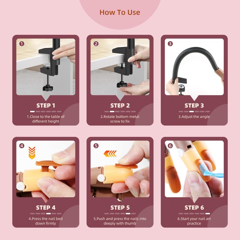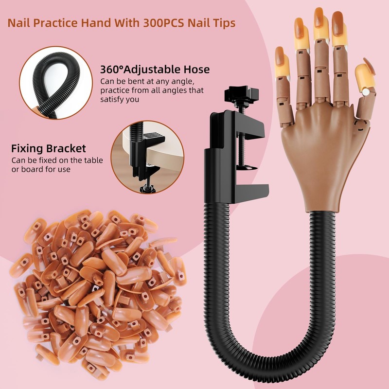 - Stable Bracket: Our practice hand connector has a stainless steel bendable handle that can be stably and securely clamped onto tables of various heights. Make your acrylic nails work more comfortably and smoothly