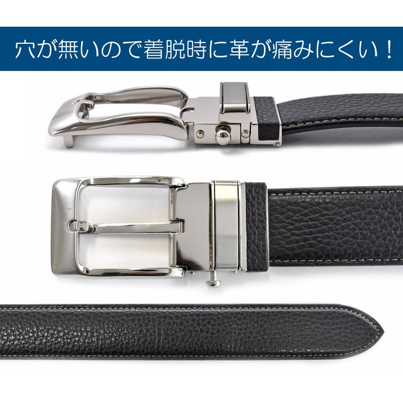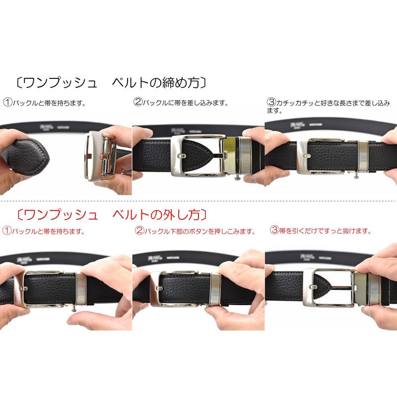 Prairie Ginza NB19880 Men's Utility Model Certified Cowhide Leather Easy to Put On and Take Off One Push Belt, navy