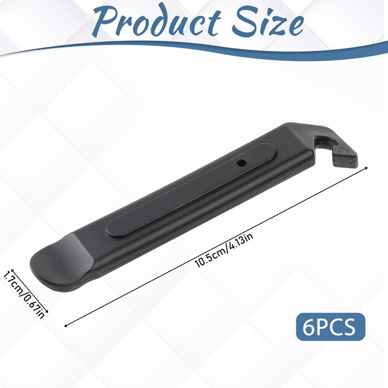 - Package contents: you will receive 6 pieces black bicycle tyre levers with dimensions 10.5 x 1.7 cm, which are easy to carry and very practical. They are an indispensable tool for cyclists to repair and maintain bicycle tyres.