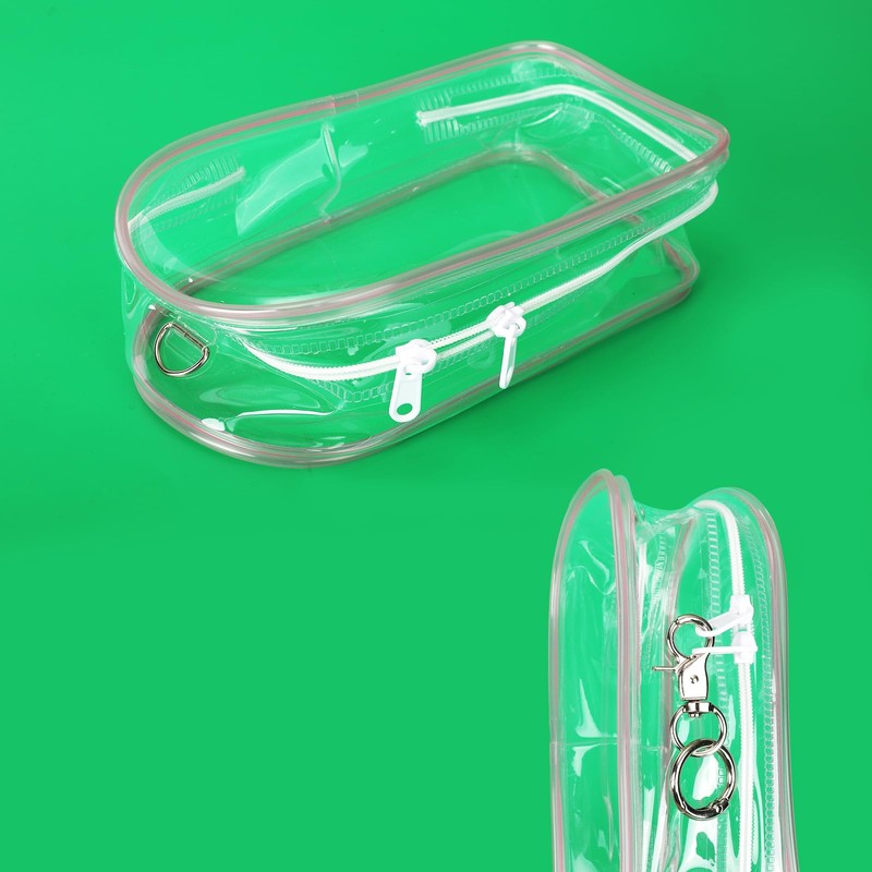 Präsentationstasche für Puppen, 19,5 x 10,5 cm, wasserdichte Tragetasche aus PVC mit Pompons und Schlüsselanhänger Durchsichtige Präsentationstasche für Puppen (Rosa)