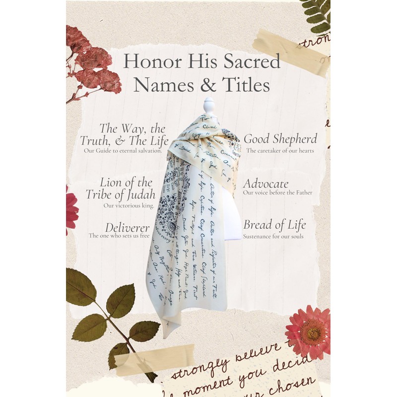 - Discover the Depth of Christ's Character: Experience the profound reverence of Jesus with our shawls and wraps for women. Adorned with 84 titles and His name in 75 languages, this scarf offers a global and timeless tribute to our Savior.