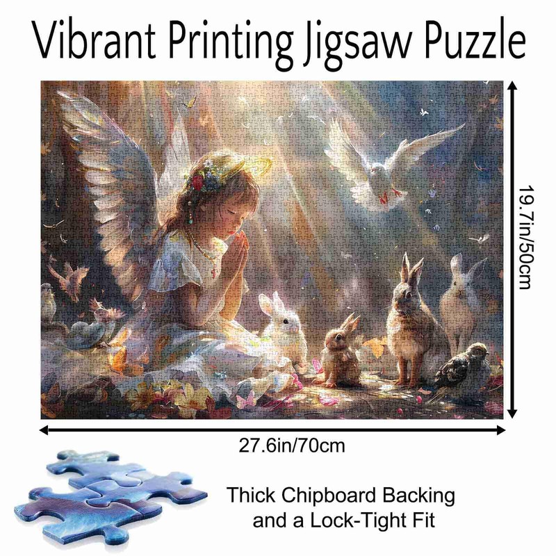 Prayerful Angel in the Sunshine Jigsaw Puzzle, Angel Rabbits Birds 1000 Pieces Jigsaw Puzzles for Adults,27 x 20 Inches Puzzles for Family,HD Quality Puzzle Gift,Family Activity Perfect for Game Night