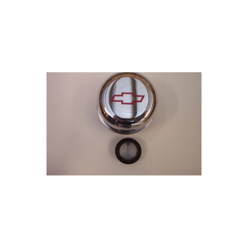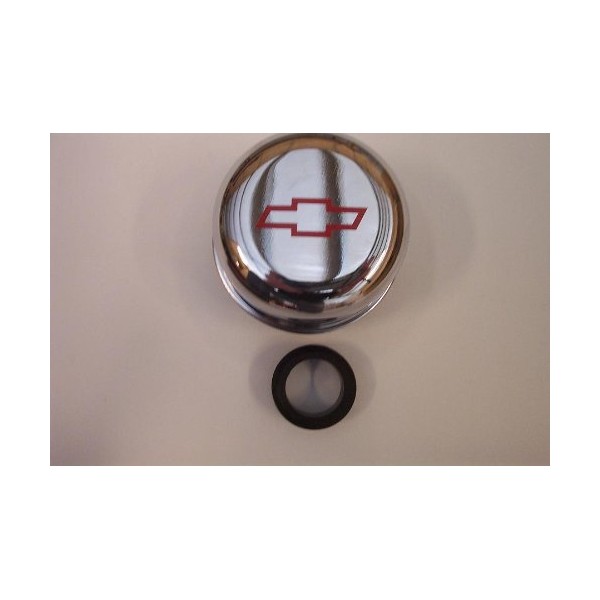 These are great looking push in breathers for your valve covers. These will fit just about any chevy valve cover. They are made with a 1" stem and come with a matching grommet. The grommet size is the standard 1.25"OD and 1"ID. These are sold as a single. If you need a pair please see my other listings. These have the familiar red bow tie to make your ride really sharp!