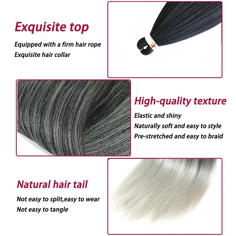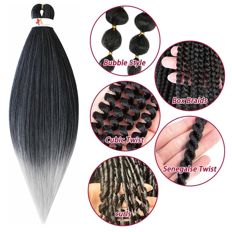 • Diverse styling: prestretched braiding hair Best suited for box braids, bohemian braids, braids, twists and protective styling, as well as large braids, ponytails, cuboid braids, corn braids, square braids, box braids, crochet hair or Senegalese twist crochet hair, etc. It can create a unique hairstyle effect for you, making you stand out from the crowd.