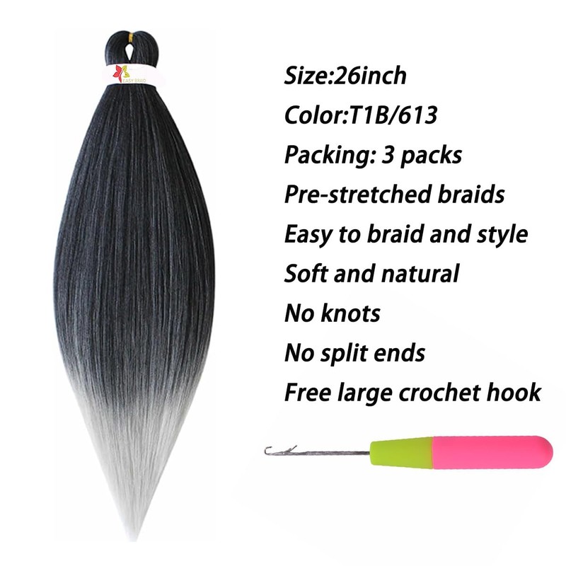 Pre-Stretched Braiding hair 26 Inch 3 Pack High Temperature Synthetic Extensions for Box Braids and Twists Wedding Makeup Styling (1B/613, 26inch)