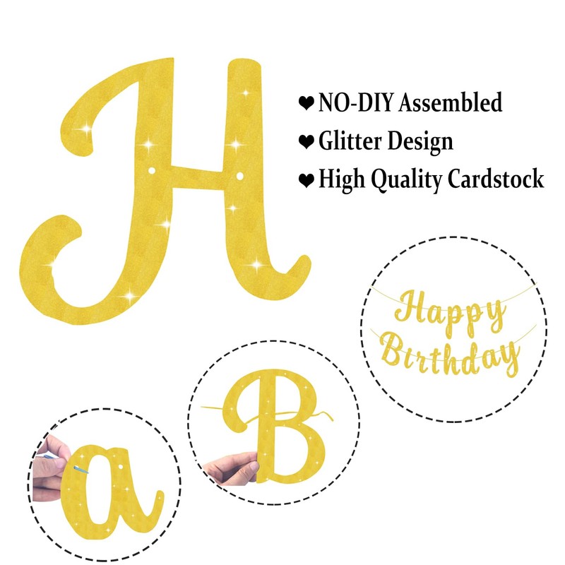 - Material: this glitter golden happy birthday banner sign are made of 300gms glitter cardstock, reusable and sparkly