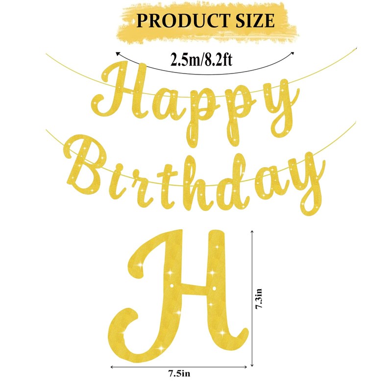 - Adjustable: This gold happy birthday banner sign consists of 13 separate letters, you can adjust the space between the letters according your need.