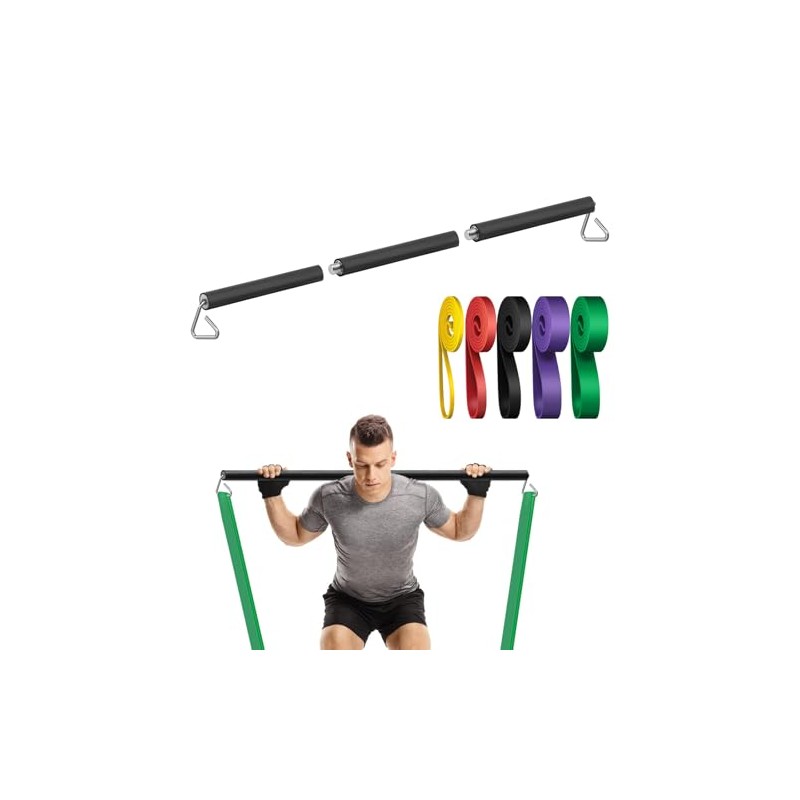 Prebene Resistance Band Bar, 26.4in or 39.4in, Workout Bar for Fitness, Portable Weightlifting Training, Suit for Home Exercise, Resistance Band Training (bar + 4 Bands)