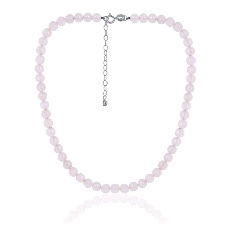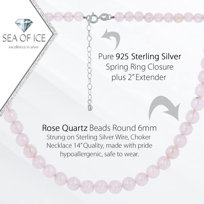 Precious Gemstone 6mm Round Beads Necklace 14" Plus 2" Extender with Sterling Silver Spring Ring Clasp (rose-quartz)