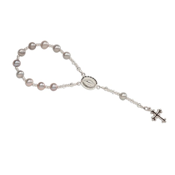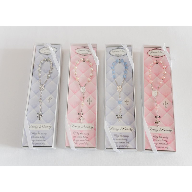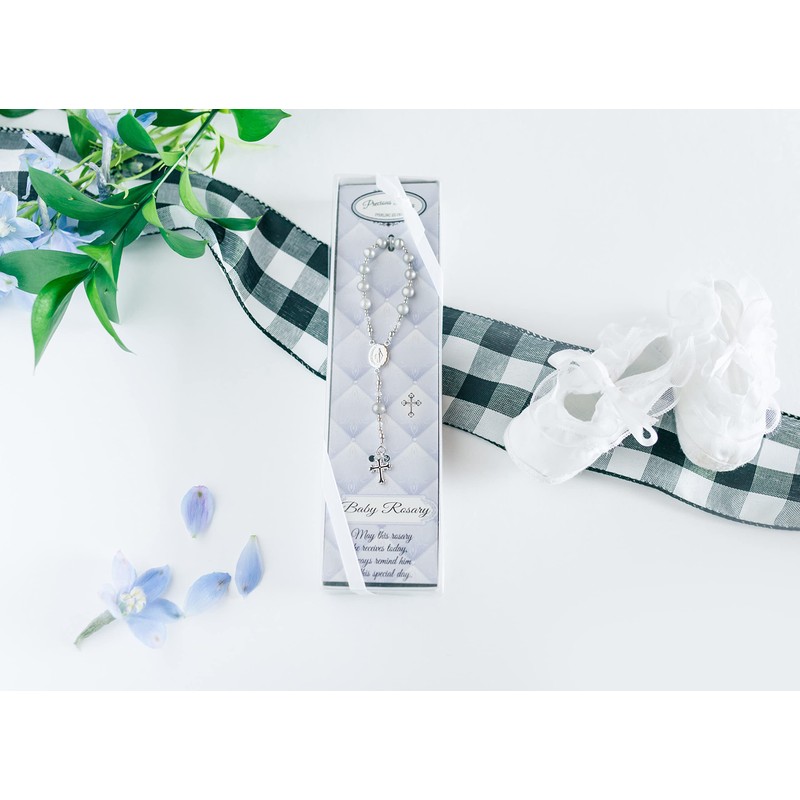 Precious Pieces Sterling Silver Baptism Baby Rosary in Grey