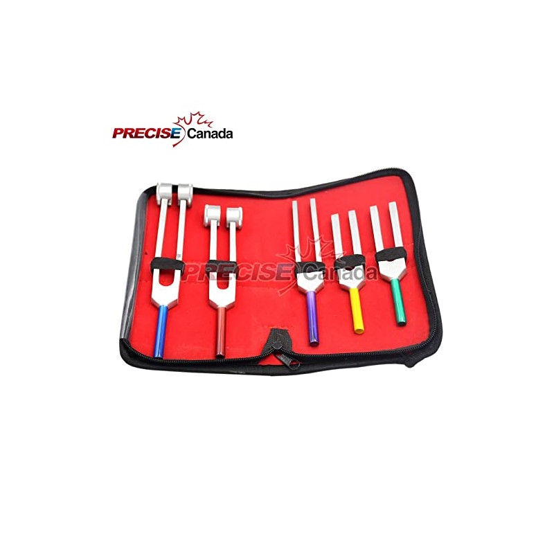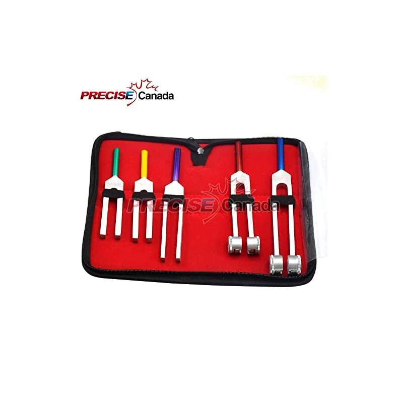 - Precise Canada 5 Piece Medic Sensory Color Coated Handle Tuning Fork Set - Includes 128, 256, 512, 1024, and 2048 cycles plus carrying case