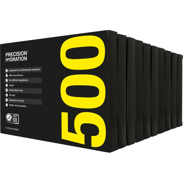 Precision Hydration Precision Hydration Electrolyte Powder Packets - No Artificial Ingredients, Multi Strength Hydration Packets - Individual Waterproof Servings - Gluten Free, (10 Boxes (80 Packets), 500mg/l-Yellow)