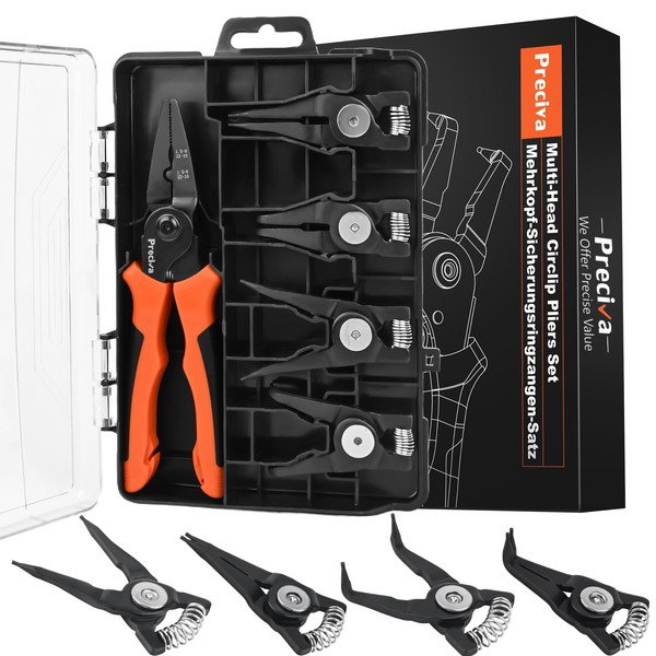 - Preciva Circlip Pliers 180 mm Snap Ring Pliers Sea Ring Pliers with 4 Interchangeable Pliers Head and Storage Box
