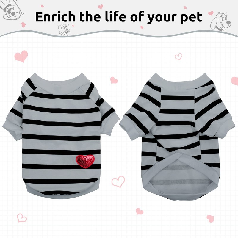 - 【Fashion Design】Classic and fashion stripe style design make your dog looks cute. Adorable dog shirt with heart patterns, to dress your pet's daily life or make your dog special on the street.