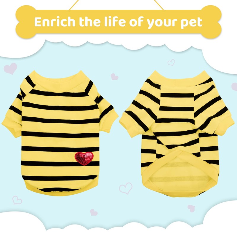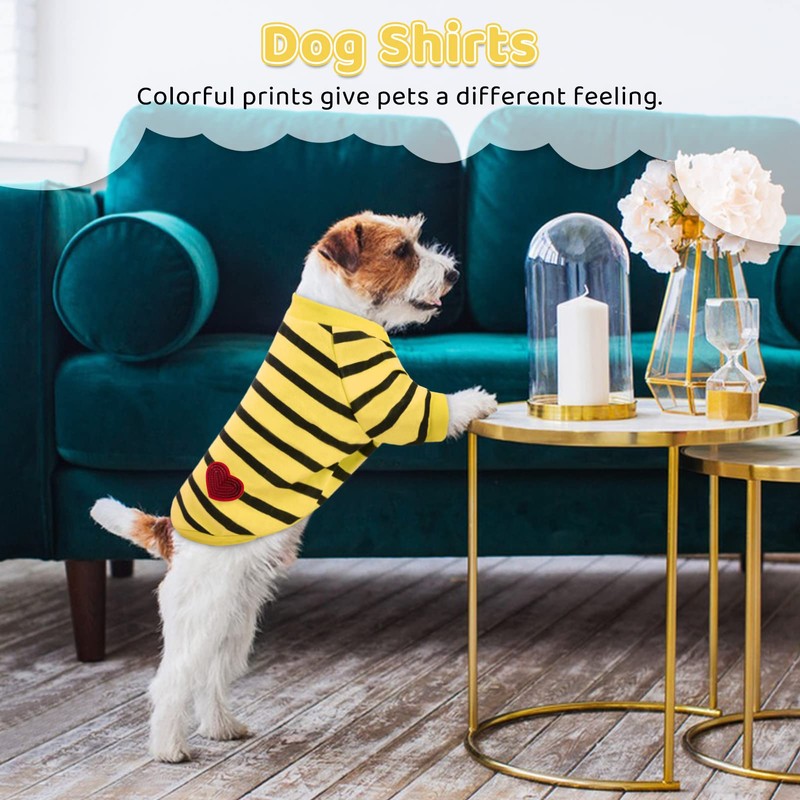 - 【Fashion Design】Classic and fashion stripe style design make your dog looks cute. Adorable dog shirt with heart patterns, to dress your pet's daily life or make your dog special on the street.