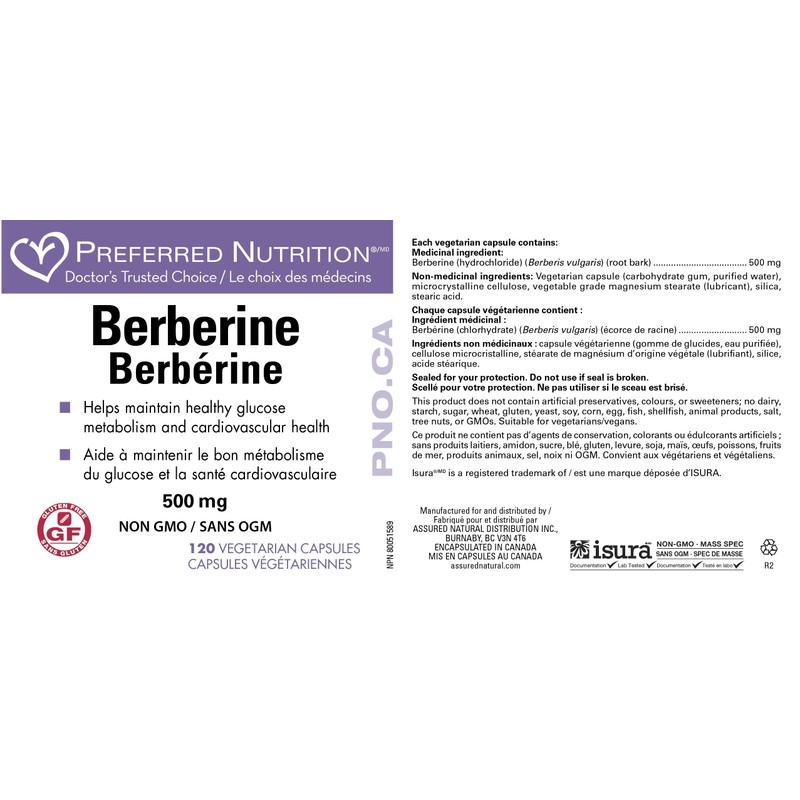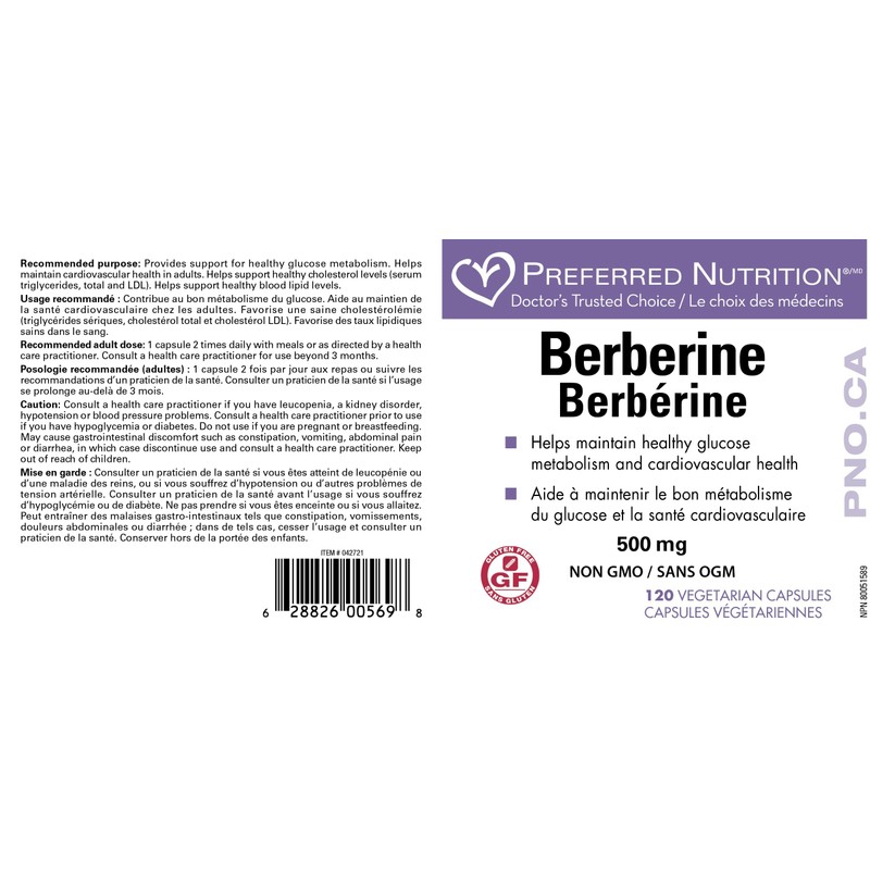 Preferred Nutrition - Berberine 500 mg - 120 Vcaps | Support Glucose Metabolism