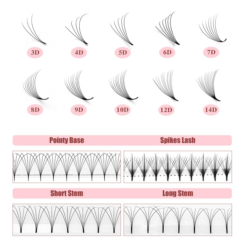 - 【Short Stem & Not Fall Apart】ABONNIE premade fans manufactured with state-of-the-art technology, the unique double-heated bonding method ensures that the lash fans won't fall apart when you pick the fans up or pick up the lash strip. The lash fans for eyelash extensions has point base, no foreign body sensation in the eye, better fit to your natural lashes.