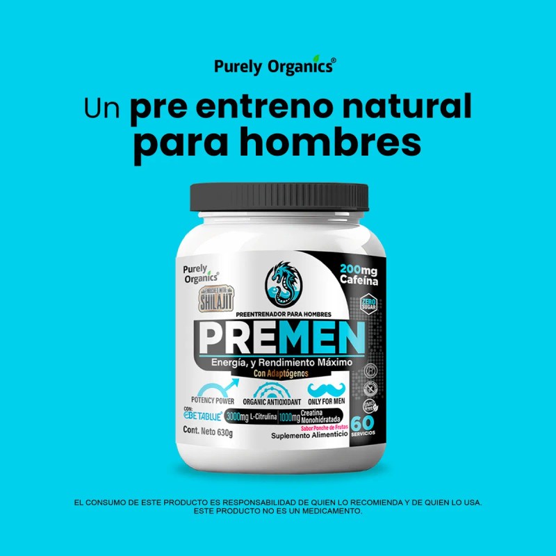 PreMen | Preworkout para Hombres con Shilajit | Energía y Antioxidantes | 60 Servicios