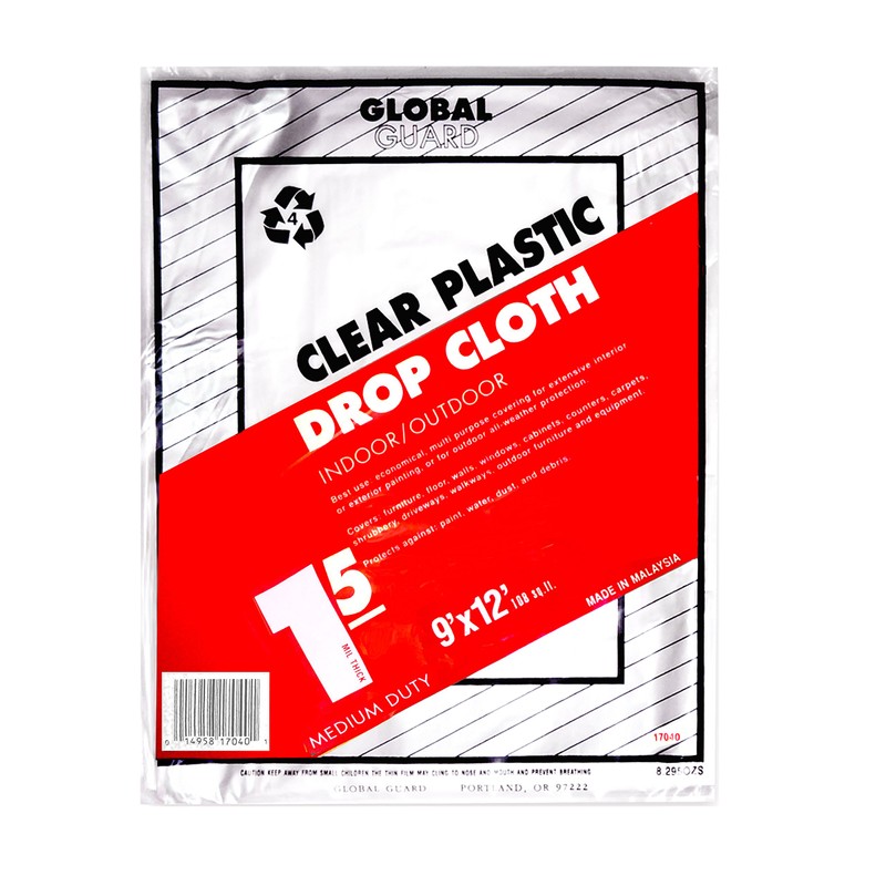 Premier 9' x 12' 1.5 MIL Clear Plastic Drop Cloth, 17040