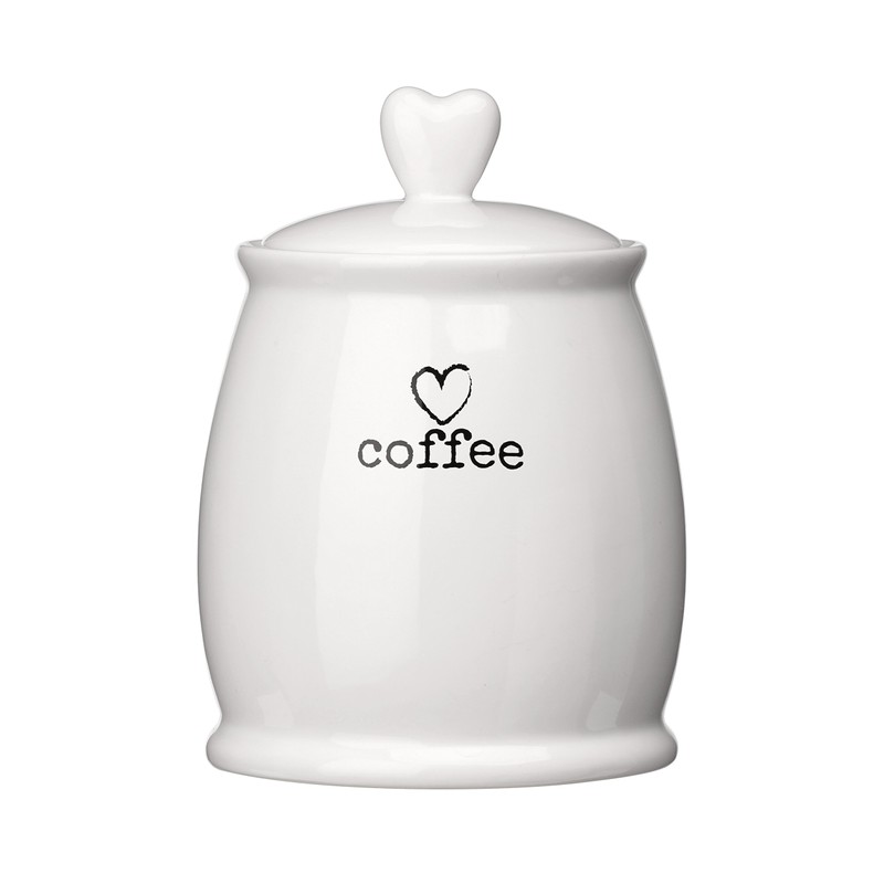 - Barrel shaped canister features an elegant love heart design and worded coffee for easy identification
