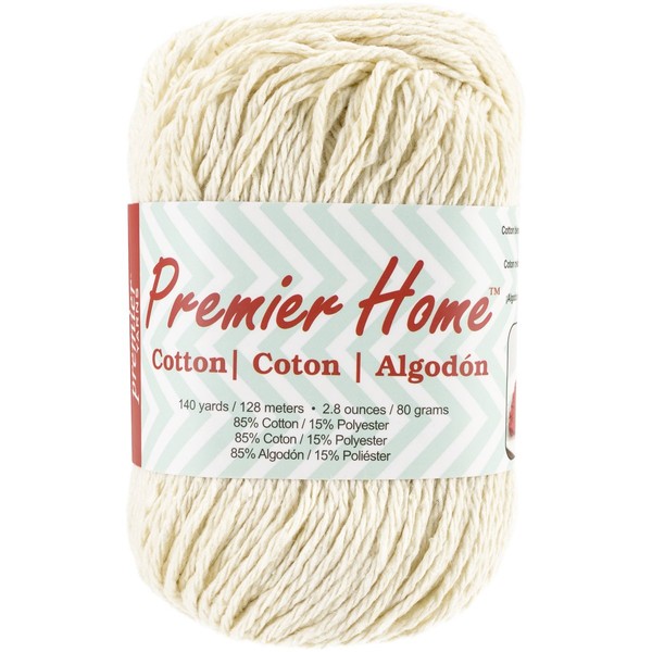 Premier Home Cotton Yarn, Worsted Weight Yarn 4 for Crocheting and Knitting, 85% Cotton and 15% Polyester Blend for Dishcloths, Towels, and DIY Projects, Cream