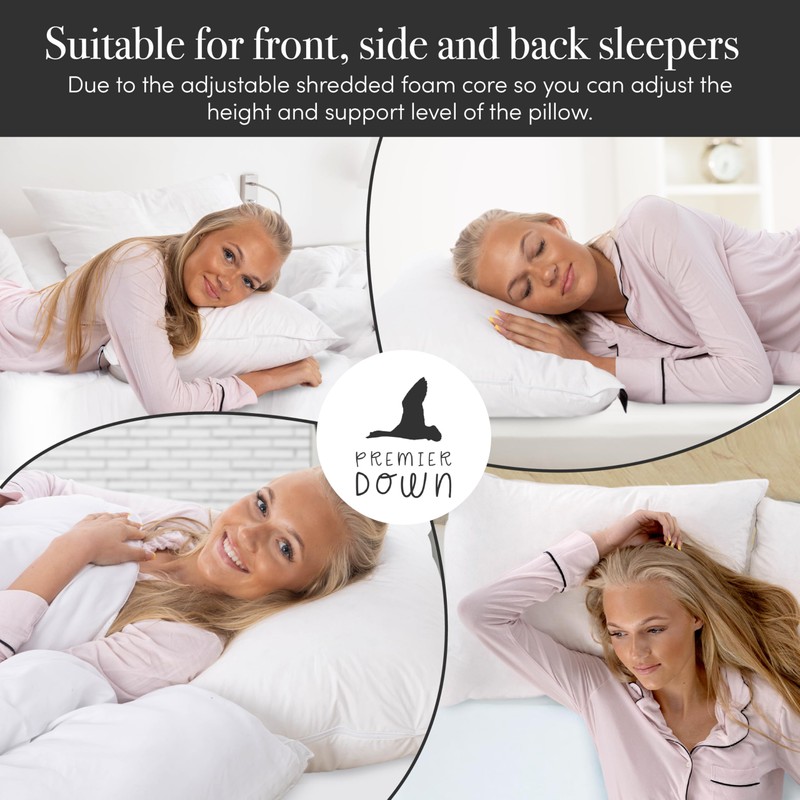 PremierDown Hybrid White Goose Feather Goose Down Mix Adjustable Shredded Orthopaedic Foam core. (Set of 2)