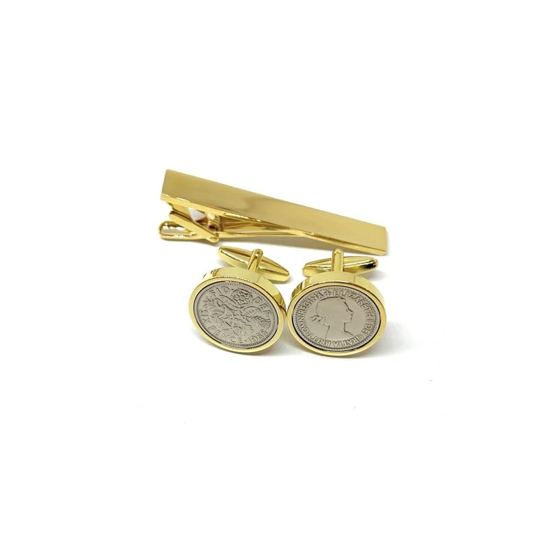 Premium 1965 Original Lucky Sixpence 6d birthday/Anniversary Cufflinks ideal for a 60th birthday HT GLD Tie clip set