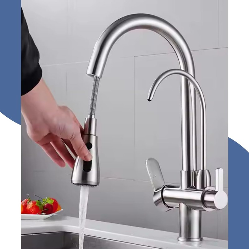 Premium 3-Way Kitchen Faucet – Modern Design with Pull-Down Sprayer, Hot/Cold & Filtered Water Dispenser (Brushed Nickel Finish)