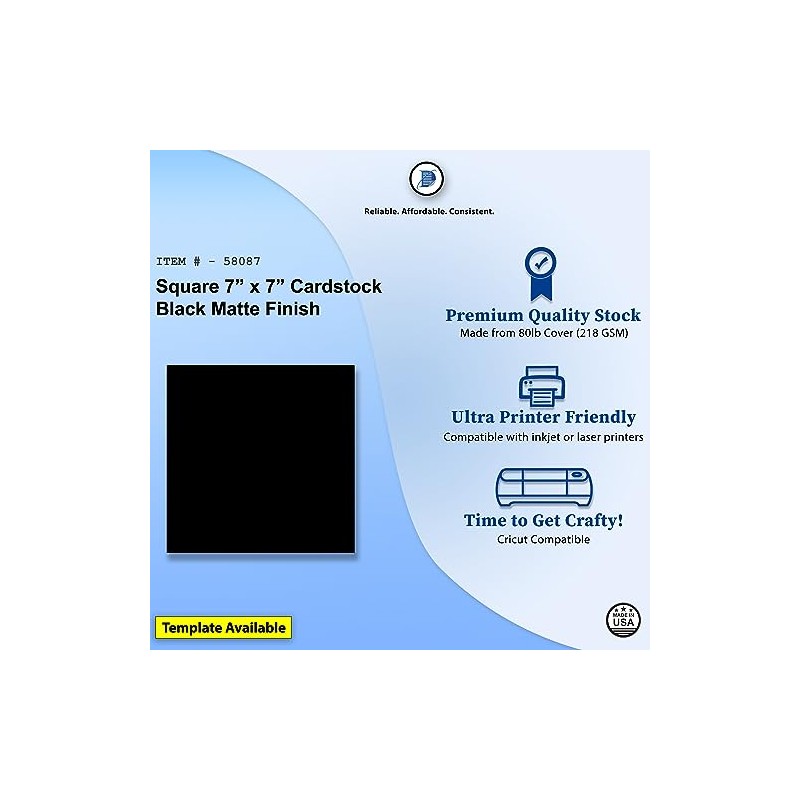 Premium 7 x 7 Black Square Cardstock (80lb Cover) - For Greeting Cards, Invitations, Displays & backing (40 Sheets)
