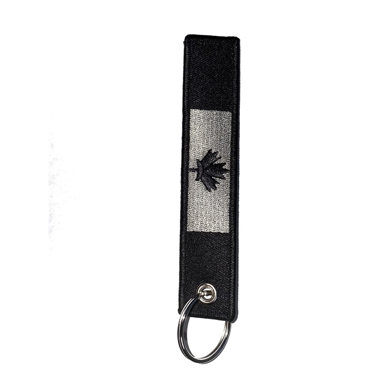Premium Canada Flag Keychain Double Sided Embroidered Fabric Keychain Ring Key Chain Aviation ATV UTV Motorcycle (Black)