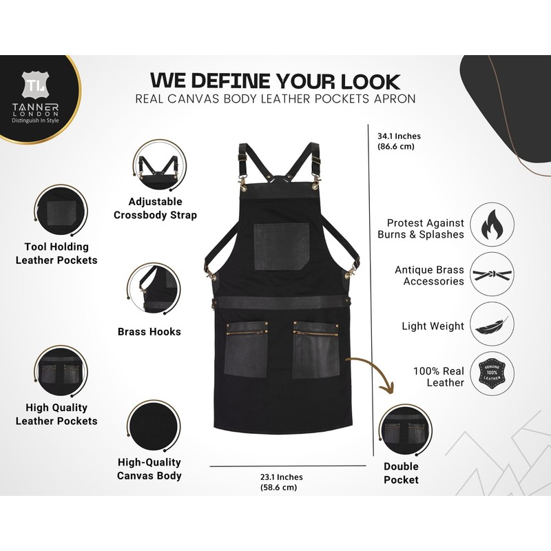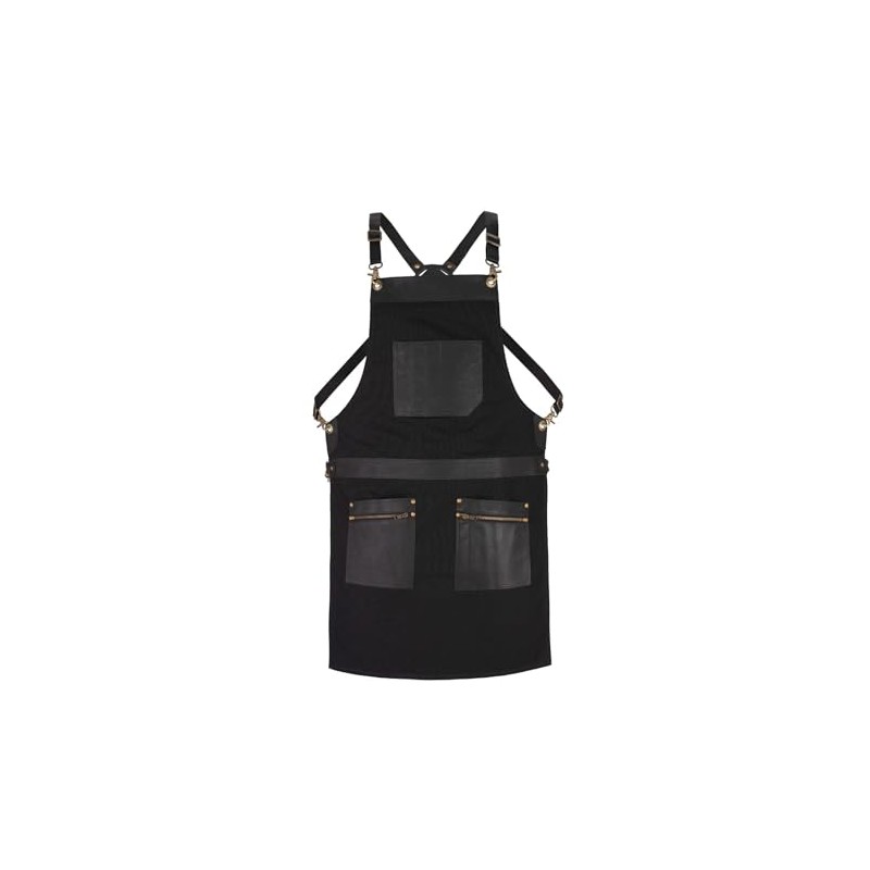 - Durable Canvas & Leather Design: Made from heavy-duty canvas with premium leather pockets for long-lasting use and a stylish look. Adjustable Fit for All Sizes: Fully adjustable straps ensure a comfortable fit for men and women of all sizes. Multiple Storage Options: Features 2 large pockets and 3 small tool holders, perfect for keeping tools, utensils, and accessories within easy reach.