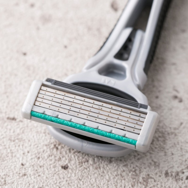 - Disposable 5 Blade Razor: Even though it is disposable it achieves the sharpness of 5 blades. Try the shave that is not found in other single-blade disposable razors. Contents: 4 pieces; Country of Origin: Japan; Material: Blade: Stainless steel; Scrubber: Water soluble resin; Resin parts: ABS; Elastomer cap: Polypropylene