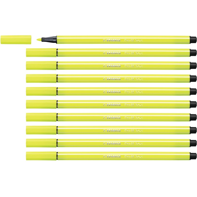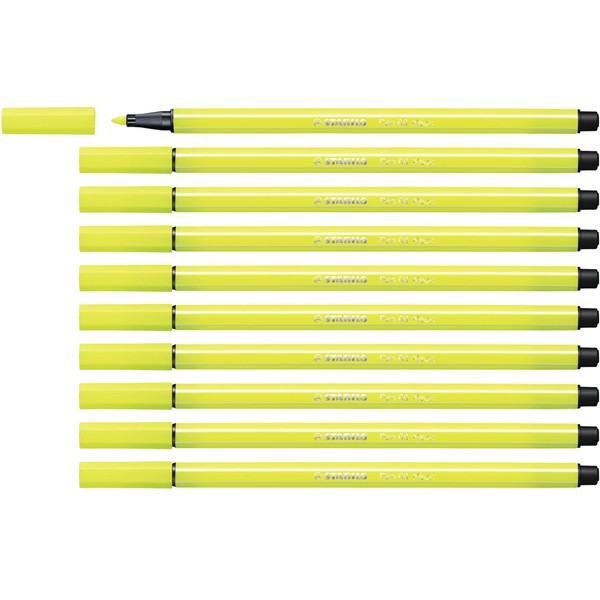 Premium Fibre-Tip Pen - STABILO Pen 68 - Pack of 10 - Neon Yellow