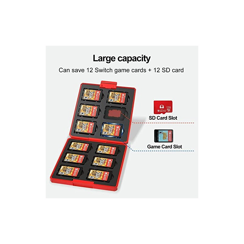 Switch Game storage Case made of high-quality hard shell material, that makes it waterproof, dust proof and shockproof. The interior of the case is made of soft silicone lining to protect the cards from damage. Holds up to 12 games and SD Card storage as well. And its compact design makes it great for travel.