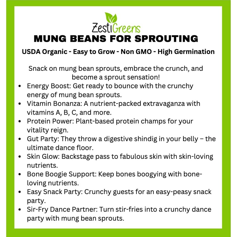 - Top-Quality Organic Seeds: Our mung bean sprout seeds are 100% organic and non-GMO, cultivated in the USA to provide the highest quality, ensuring safe and nutritious sprouts for you and your family.