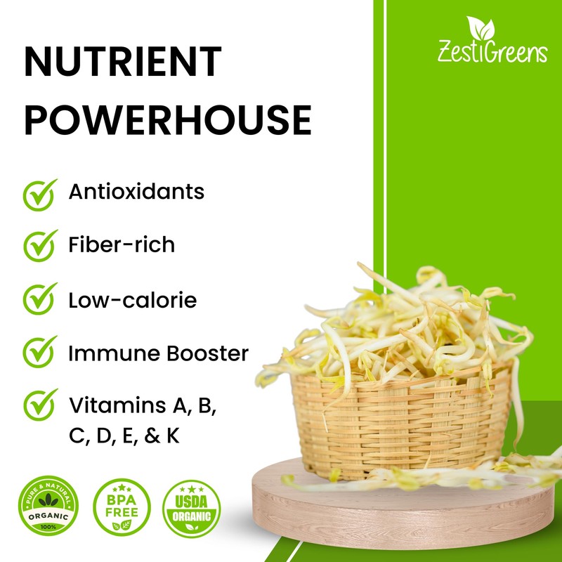 - Nutrient-Rich Superfood: Mung bean sprouts are a powerhouse of nutrition, packed with essential vitamins such as A, C, and E, as well as protein, fiber, and antioxidants, contributing to overall health and vitality.