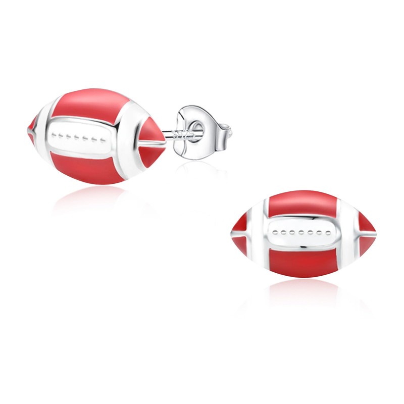 Premium Sterling Silver Sports Earrings Stud, Sports Jewelry Party Favors Gifts for Team Moms, Sport Fans as Football, Baseball, Soccer, Volleyball, Basketball Games(Rugby/Football)