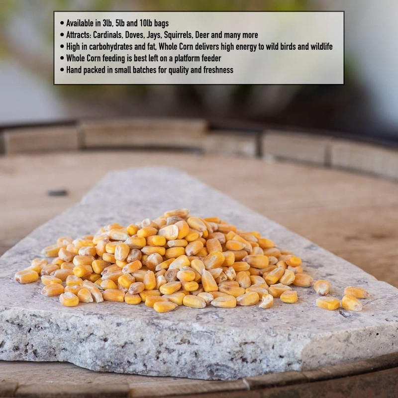 • High in carbohydrates and fat, Whole Corn delivers high energy to wild birds and wildlife