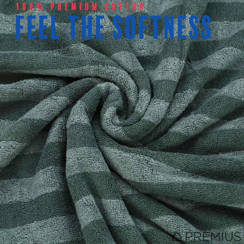 - PREMIUM 100% COTTON: The PREMIUS Striped Towels are made from 100% cotton yarn, delivering unparalleled softness and absorbency. The plush fibers feel luxurious against your skin while effectively removing residue and moisture. Ideal for absorbent and hotel luxury use after handwashing, face care, or after a shower, these towels gently care for your skin while offering exceptional drying performance. Indulge in the perfect combination of softness and functionality with each use.